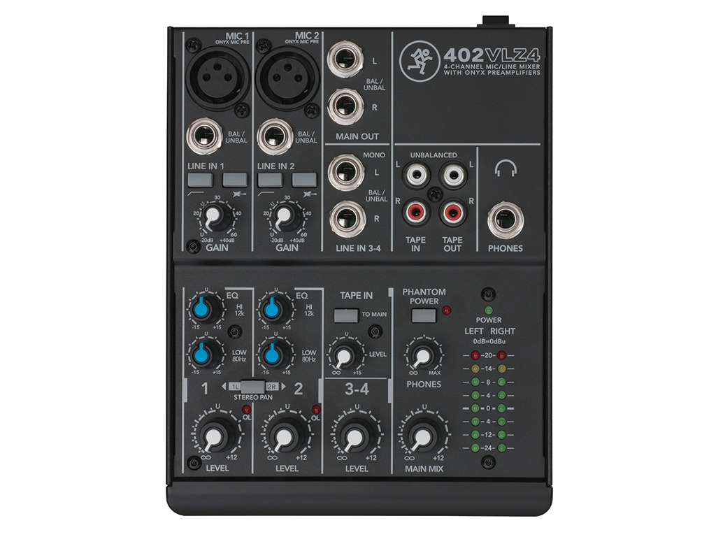 Das 4-kanalige 402VLZ4 zeichnet sich als einer der Marktführer durch Mackies renommierte Onyx Mikrofonvorverstärker und einem extrem kompakten Design aus ideal für Anwendungen mit einer niedrigen Eingangsbelegung. Von jedem Eingang zu jedem Ausgang bietet das 402VLZ4 für ein möglichst sauberes und unverzerrtes Signal den höchstmöglichen Headroom und Rauschabstand. Darüber hinaus besticht das 402VLZ4 mit seiner soliden Bauweise und ist mit einer kontrastreichen Farbgebung der ergonomischen Oberfläche ausgestattet und somit leicht und klar bedienbar. Mit zusätzlichen Features wie Eingänge mit Instrumentenpegel, Phantomspeisung und LED-Pegelanzeige wird es zur ersten Wahl für jeden, der ein leistungsfähiges Mischpult mit niedriger Kanalanzahl braucht.