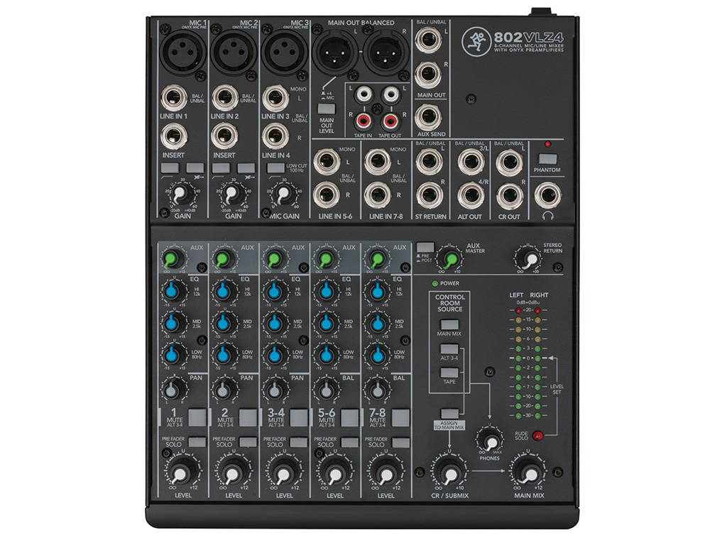 Das 8-kanalige 802VLZ4 zeichnet sich durch Mackies renommierte Onyx Mikrofonvorverstärker und einem extrem kompakten Design aus ideal für Anwendungen mit einer niedrigen Eingangsbelegung. Für ein möglichst sauberes und unverzerrtes Signal bietet das 802VLZ4 von jedem Eingang zu jedem Ausgang den höchstmöglichen Headroom und Rauschabstand. Darüber hinaus besticht das 802VLZ4 mit seiner soliden Bauweise und ist mit einer kontrastreichen Farbgebung der ergonomischen Oberfläche ausgestattet und somit leicht und klar bedienbar. Mit zusätzlichen Features wie Eingänge mit Instrumentenpegel, Phantomspeisung und LED-Pegelanzeige wird es zur ersten Wahl für jeden, der ein leistungsfähiges Mischpult für den professionellen Einsatz braucht.