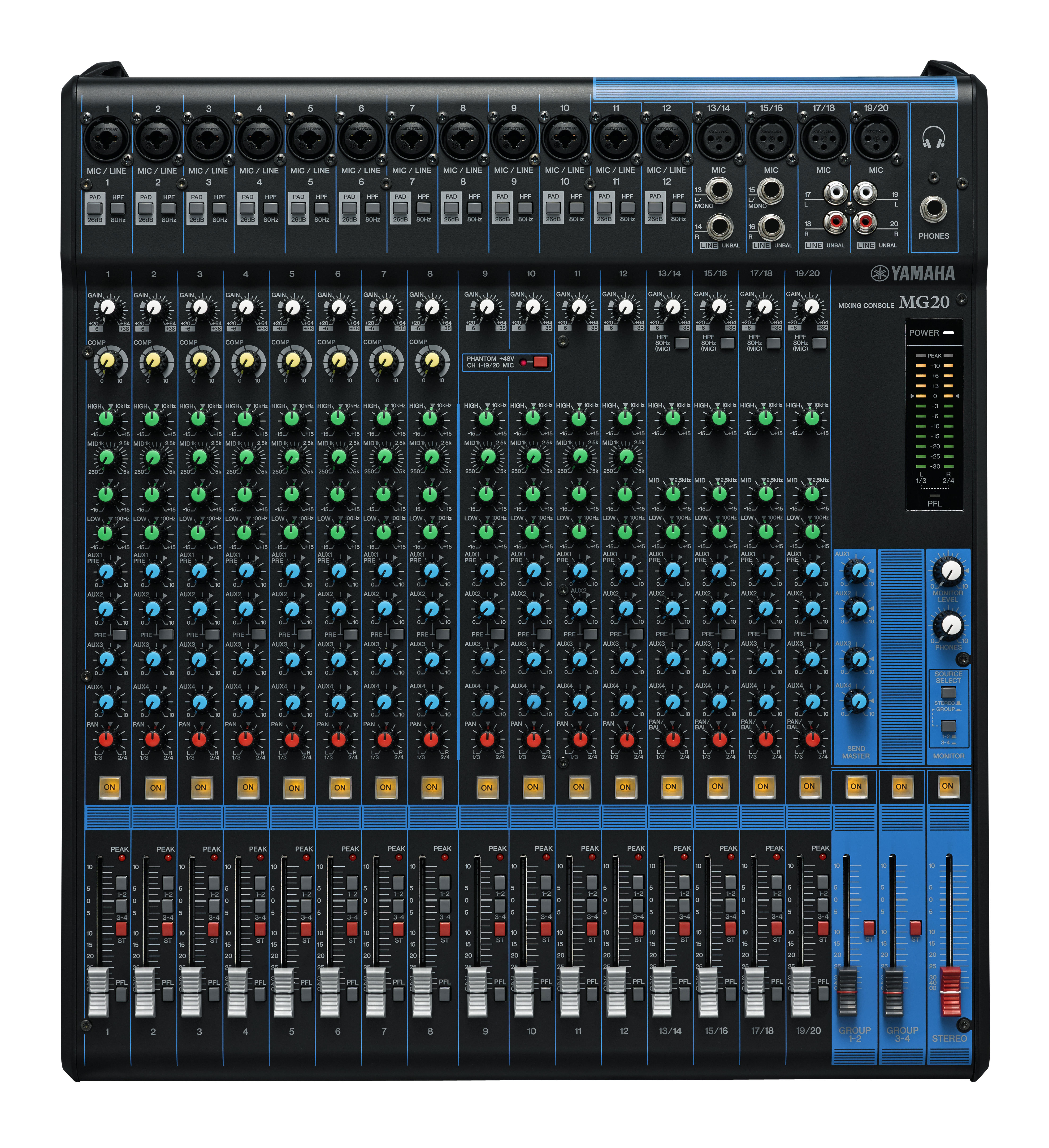 - Max. 16 Mikrofon- / 20 Line.Eingänge (12 mono + 4 stereo)
