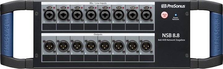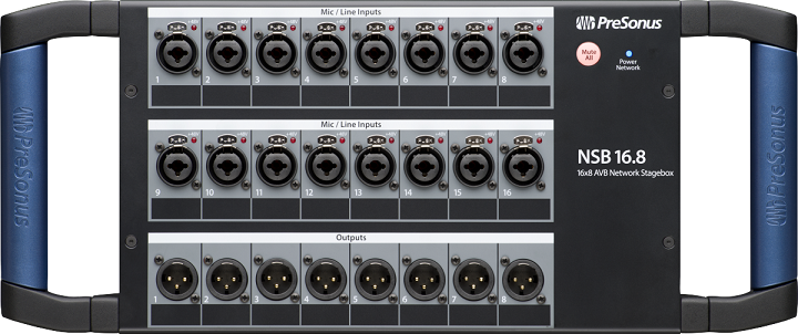 Integrierte AVB-Netzwerkfunktionalität zum Aufbau kompletter AVB-Systeme mit PreSonus NSB-Series Stageboxen, EarMix 16M Personal Monitor Mixern, weiteren StudioLive Series III Mixern und SW5E AVB-Switches