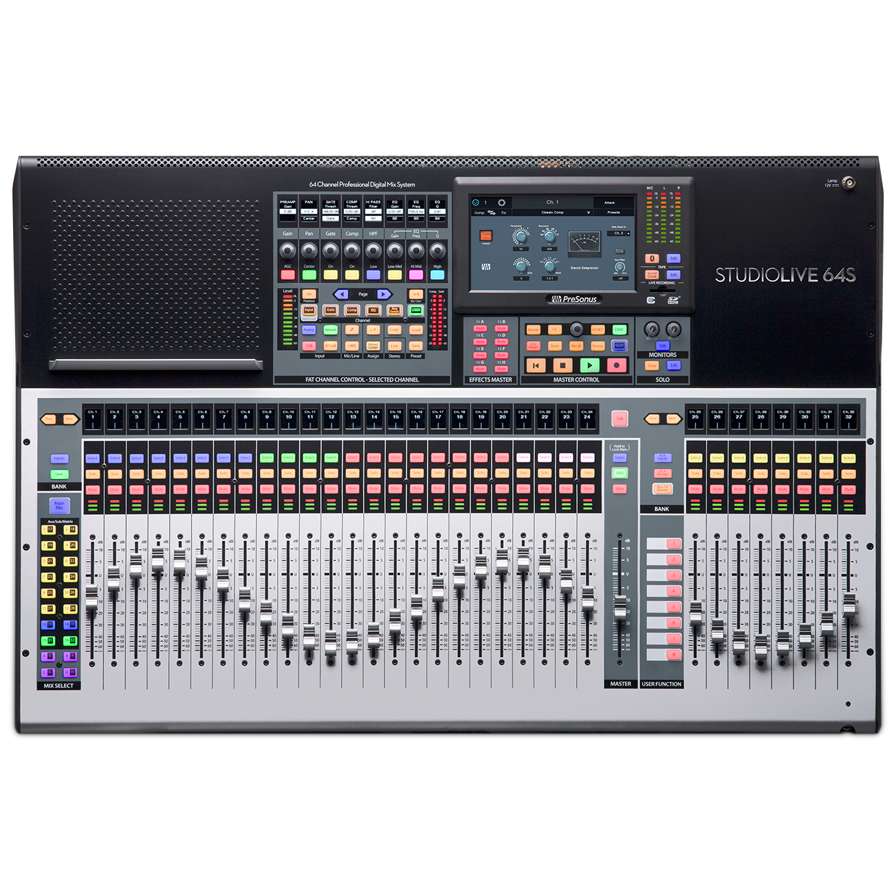 Der 64-Kanal-Mixer StudioLive® 64S von PreSonus® ist der leistungsfähigste und flexibelste Digitalmixer für Installationsanwendungen, Tourbetrieb und Studio und bietet neben erweiterten AVB-Netzwerkfunktionen ein umfassendes integriertes Softwarepaket.