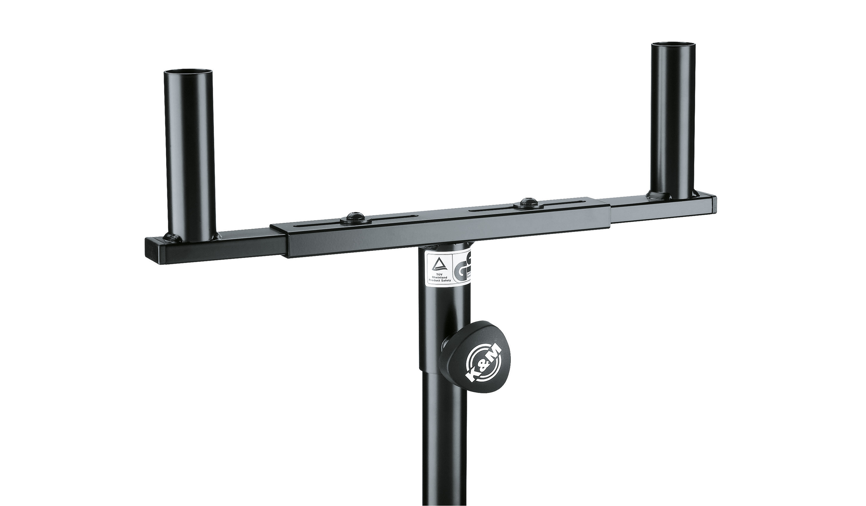 Besonderheit: für zwei Boxen; arretierbar mittels Klemmschraube; GS-geprüft bis 2 x 25 kg zentrische Belastung Material: Stahl Breitenverstellbar: von 310 bis 490 mm passend für Rohrdurchmesser: 35 mm