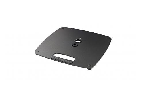 26703 Sockelplatte - schwarz struktur, Abmessung: 410 x 410 x 27,3 mm, Gewicht: 7 kg Die kleinste Sockelplatte aus der K&M Serie bietet eine Größe von 410 x 410 mm und ein Gewicht von 7 kg. Dank der integrierten Gewindebuchse passt die Platte für alle gängigen Distanzstangen und Rohrkombinationen mit Gewindebolzen M20. Ein praktischer Tragegriff, eine Kabeldurchführung sowie vier stabile Füße mit Filzüberzug bieten weitere nützliche Vorteile. Mit dem beigefügten Schlüssel kann die Rohrkombination individuell ausgerichtet werden.