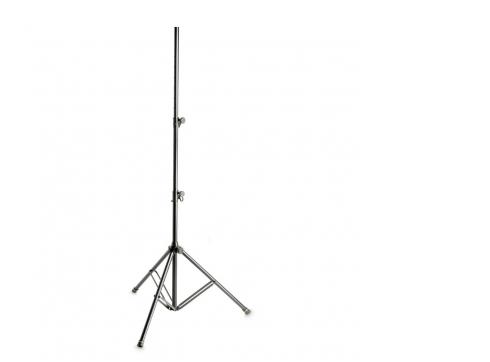 Lautsprecher- und Lichtstativ mit zwei Auszügen Solide, langlebige Dreibein-Konstruktion Kräftiges Stahlrohr Robuste Fußmanschette aus Aluminium-Druckguss 2 Auszüge 3 m maximale Höhe