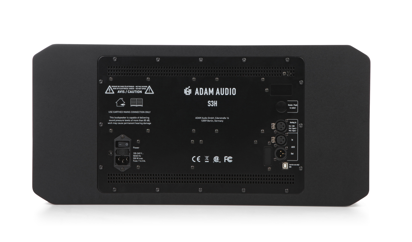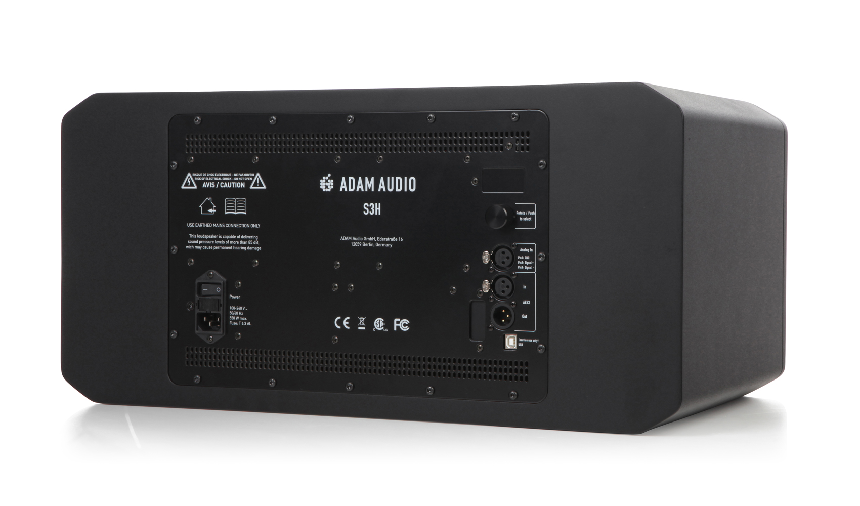 Der S3H mit seinem 3-Wege-Sytem und seinen kraftvollen Verstärkereinheiten ist optimal konfiguriert für den horizontalen Einsatz als Mittelfeld-Monitor, kann aber auch, aufgrund seiner exzellenten Reproduktionsfähigkeit der eingespeisten Tonsignale, in kompakteren Räumen verwendet werden. Wie bei allen Monitoren von ADAM Audio, ist die Klangcharakteristik der S3H sowohl kräftig als auch musikalisch, mit einer kristallklaren Wiedergabe der kritischen mittleren Frequenzen. Der breit gefächerte Frequenzgang des S3H sowie die hohen Leistungsreserven der Verstärker-Einheiten ermöglichen einen Betrieb auch ohne zusätzlichen Subwoofer: Eine Option für alle Tonschaffenden, die auf der Suche nach einem vollfrequenten Monitoring-System sind, das ihnen exakte Informationen bezüglich der Audio-Signale gibt ganz gleich ob bei hohem oder niedrigem Schalldruck.