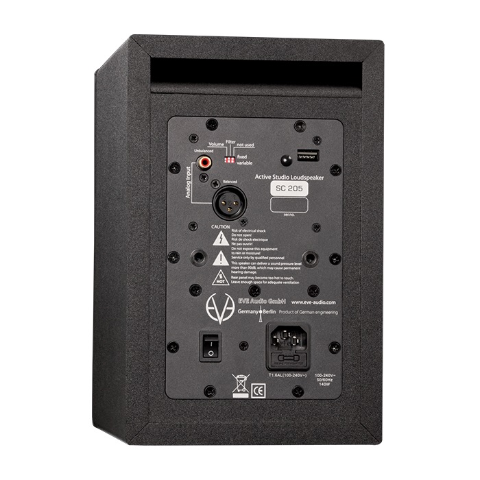 Unser AMT Hochtöner ist eine EVE Audio-eigene Weiterentwicklung am Markt befindlicher Modelle und folgt unserer Firmenphilosophie, dass erstklassige Produkte nur mit erstklassigen Bauteilen zu erzielen sind. Die Genauigkeit und Detailtreue im Hochtonbereich in Verbindung mit der Präzision im Tief- und Mitteltonbereich empfiehlt die SC205 als idealen Monitor in mobilen und Studioanwendungen.