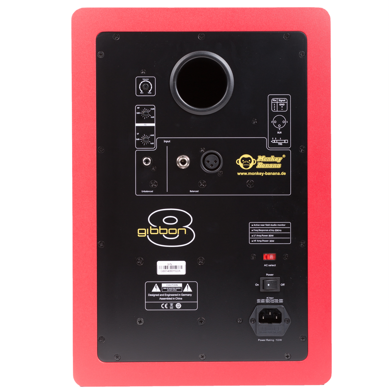 Der Monkey Banana Gibbon 8 ist ein aktiver Nearfield Monitor für Homestudios sowie für professionelle Tonstudios. Mit dem digital-biamp-betriebenen Lautsprecher sind perfekte Mixes in mittleren bis großen Abhörumgebungen möglich. Wegen des stark nach unten erweiterten Frequenzanteils ist der Gibbon 8 auch der ideale DJ-Monitor. Auch in großen Wohnräumen oder für Gamer bietet der Monitor HiFi-Genuss.