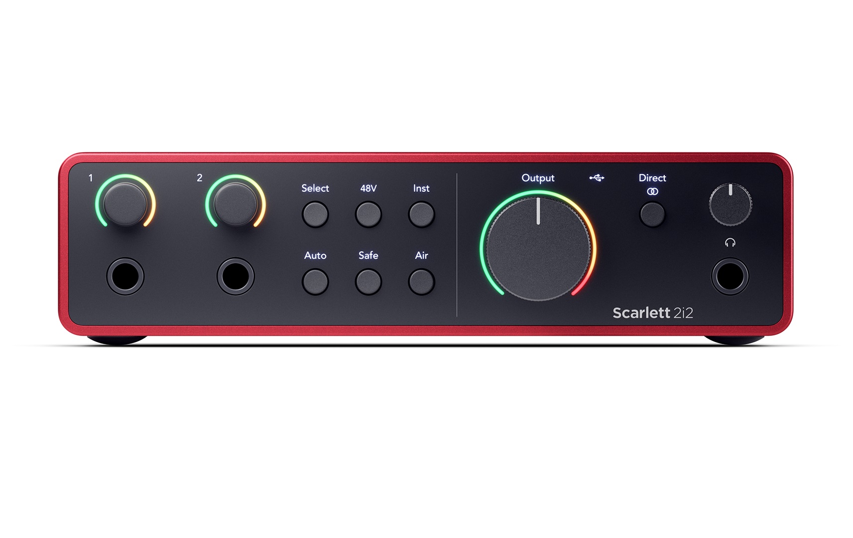 Richte Mikrofone für Gesang und Gitarre ein und schließe diese an die Vorverstärker der 4. Generation des 2i2 an Scarletts sauberste und detailreichste Preamps aller Zeiten, mit einem immensen Verstärkungsbereich von 69 dB. Schließe eine E-Gitarre an einen der Hi-Z-Instrumenteneingänge des 2i2 an es fühlt sich an wie ein echter Verstärker. Scarlett bringt die professionelle Klangqualität von Focusrite dorthin, wo du Musik machst.