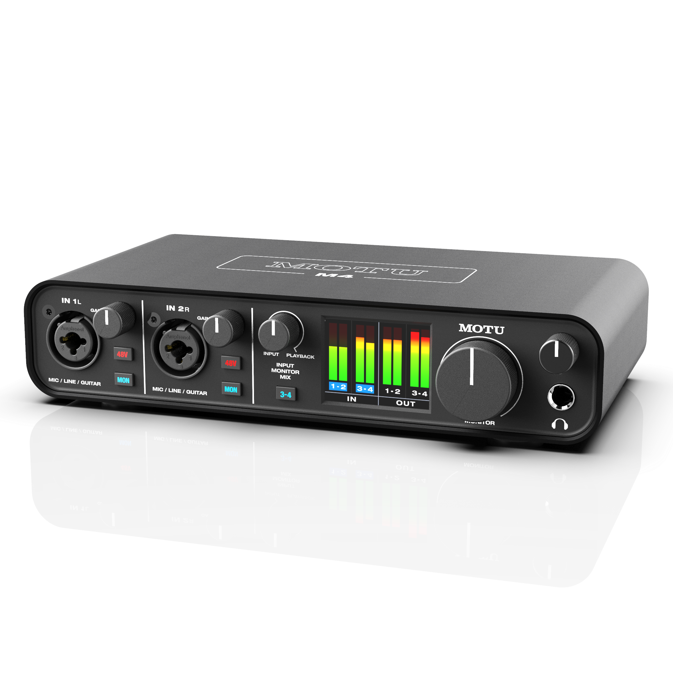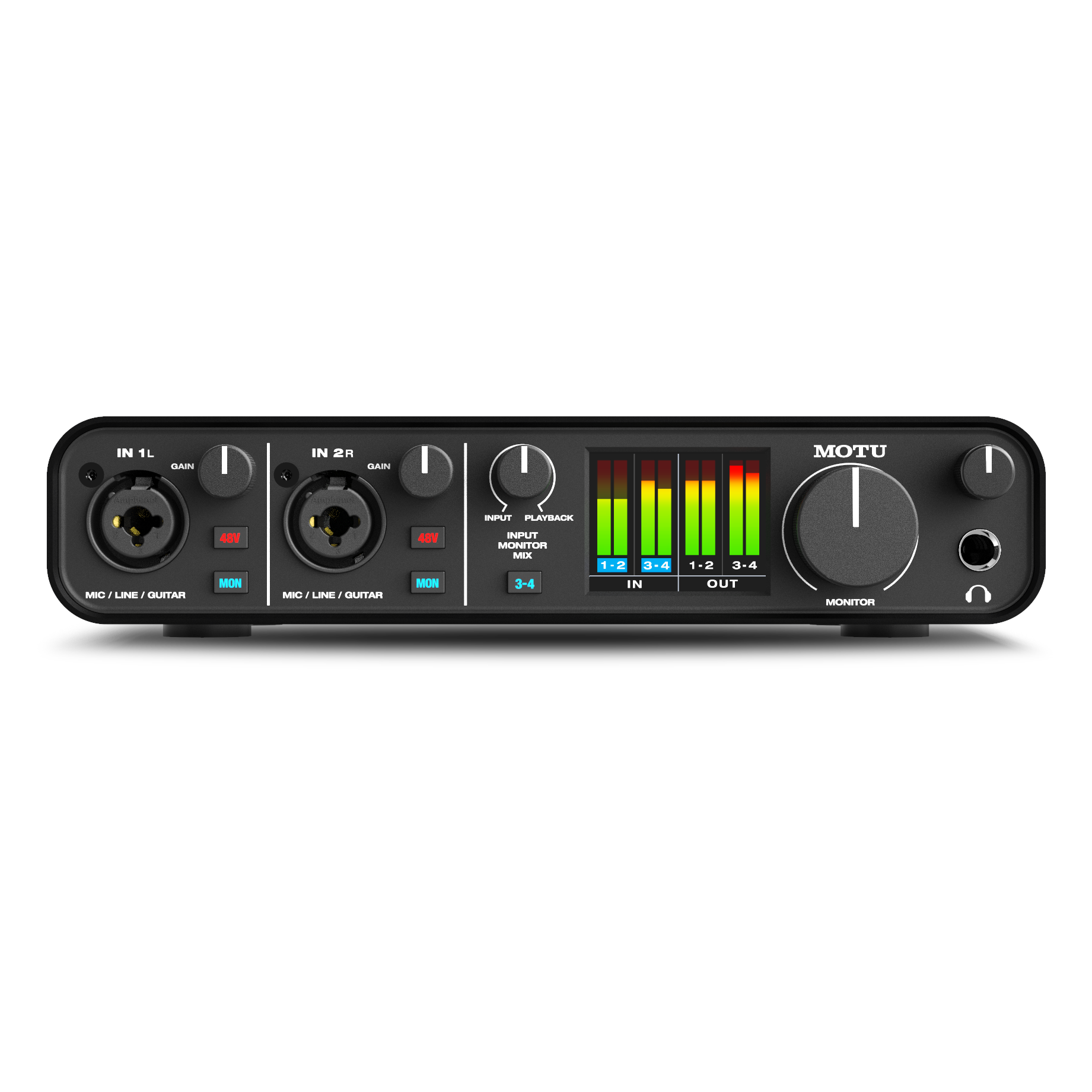 - Hardware (direct) monitoring for each input (mono or stereo for inputs 1-2, stereo for inputs 3-4)