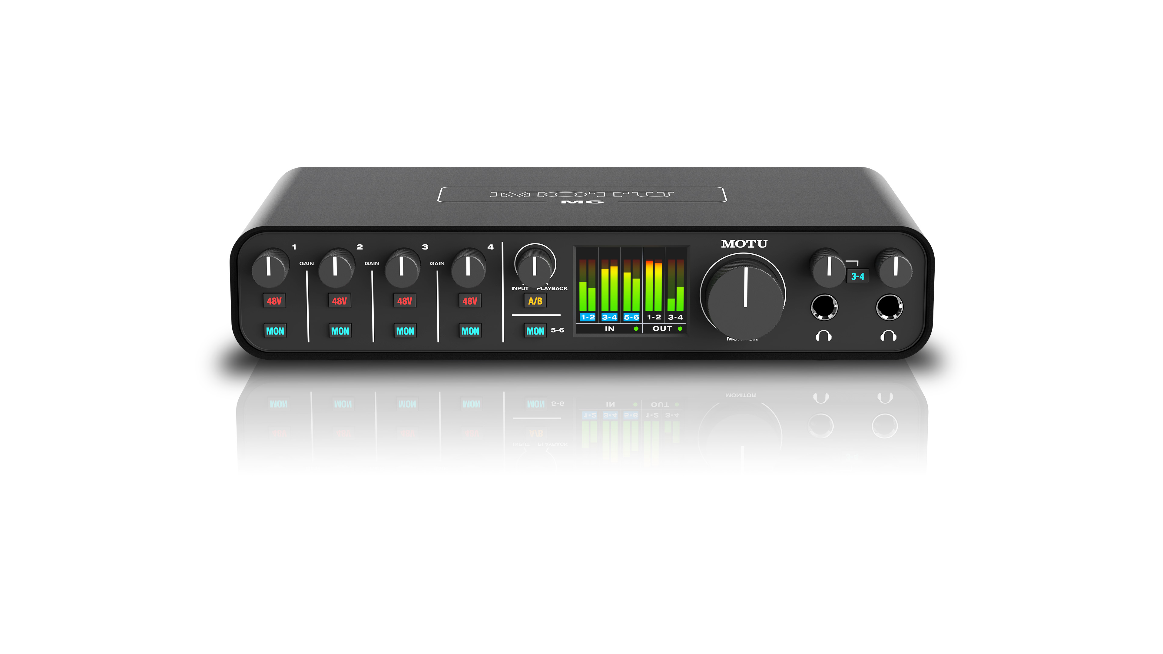 Equipped with the same ESS Sabre32 Ultra DAC Technology found in audio interfaces costing thousands, the M6 delivers an astonishing 120 dB Dynamic Range on its main outputs. ESS converters also drive the headphone outputs, which rivals dedicated headphone amplifiers costing hundreds. Ultra-clean preamp circuits produce a measured -129 dBu EIN on the mic inputs. Capture and monitor your audio with pristine clarity.