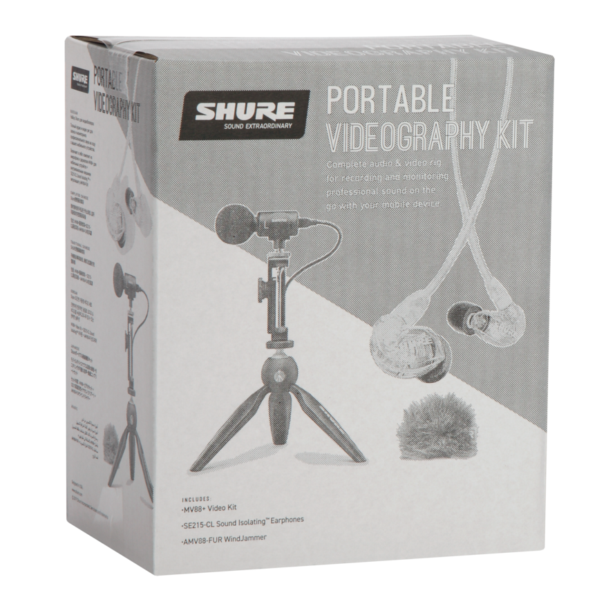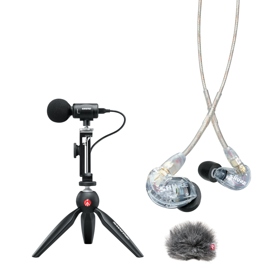 Das Shure Mobile Video-Recording Kit ist dein professionelles Recording-Set. Mit dabei: das MV88+ Video Kit, ein SE215 Ohrhörer für das Monitoring und ein AMV88-Fur Windschutz für Außenaufnahmen.
