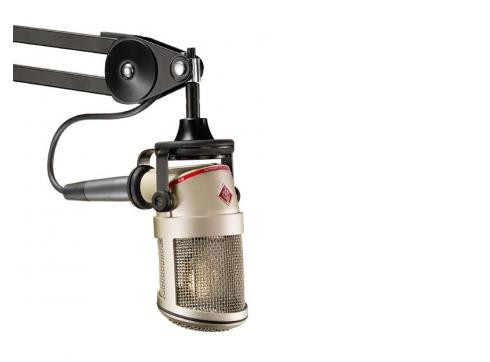 Das Mikrofon wird von der Seite besprochen, auf der sich das Neumann-Logo befindet. Die elastisch gelagerte Doppelmembrankapsel umgibt ein großer Drahtgeflechtkorb. Mit einem Schalter unterhalb des Korbes lassen sich die Richtcharakteristiken Kugel, Niere oder Acht einstellen. Ein darüberliegendes Fenster zeigt in Symbolen die Einstellung an.