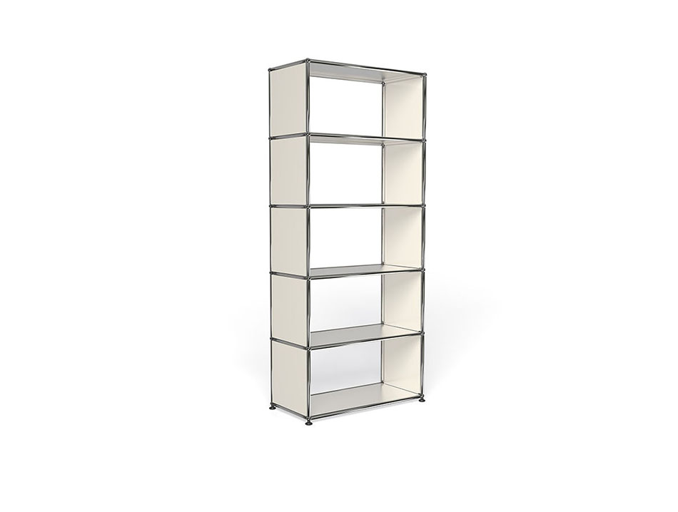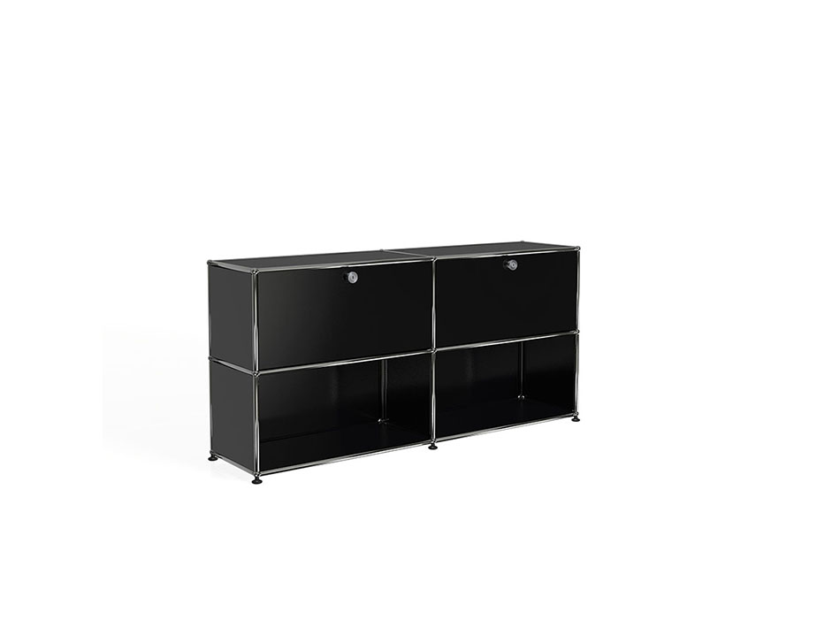 Diese USM Haller Anrichte mit zwei Klapptüren vereint geschlossenen Stauraum mit einem offenen Regal. Aus Stahl und erhältlich in fünf Farben. Ein unaufdringlicher Design Klassiker.