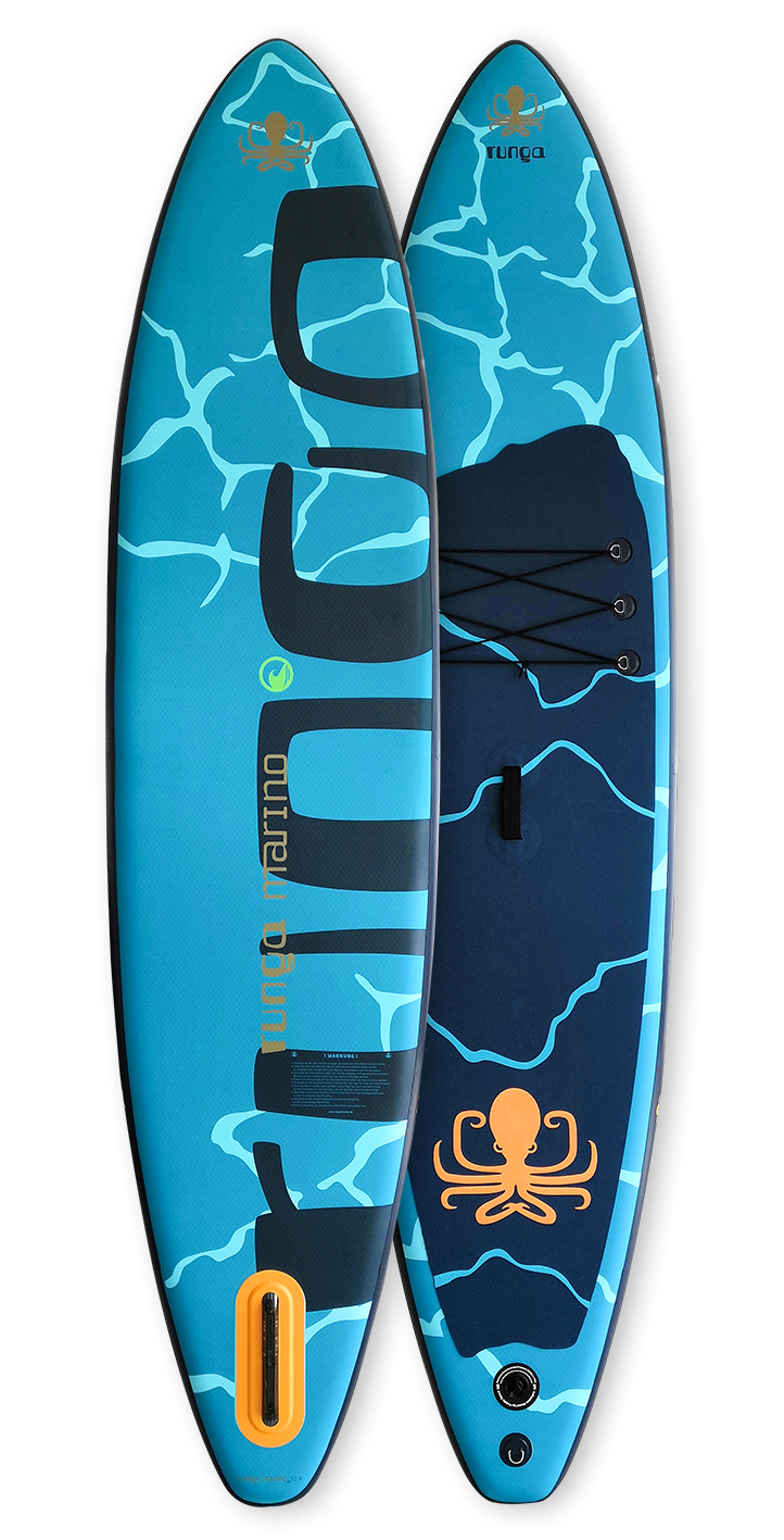 Durch den 6 Double-Layer-Drop-Stich-Aufbau in Verbindung mit einer hochwertigen Verarbeitung von speziell ausgesuchten Materialien kann das Board mit bis zu 25 PSI/ 1,7 bar aufgepumpt werden. Dieser Benchmark sorgt für maximale Steifigkeit des Boards und bietet damit eine hervorragende Performance für ein optimales SUP-Erlebnis. Empfohlenes Fahrergewicht bis 125kg, maximales Fahrergewicht 160kg. Somit stellen die Inflatables von Runga eine echte Alternative zu den Hard Boards dar und bieten trotzdem die Vorteile eines iSUPs wie ein minimales Packmaß, größtmögliche Flexibilität und ein geringes Gewicht. Der Shape des MARINO AIR bietet beste Alltags- und Touring Performance und ist somit als All-Around-Fitness-Board bestens geeignet. Die hohe Widerstandsfähigkeit bei kompromissloser Qualität und Verarbeitung verleiht dem MARINO AIR optimale Eigenschaften sowohl für den ambitionierten Paddler als auch für das Familien-Event. Auch bei den Zubehör-Komponenten wie US-Box-Finnensystem, Paddel aus Carbon/Kunststoff, Leash, Pumpe und Tasche wurde auf die Auswahl von hochwertigen Systemen und Materialien geachtet und rundet somit das Gesamtpaket optimal ab. SET 3 mit zusätzlich mit 3-teiligem Paddel. Das 3-teilige Runga SUP-Paddel bietet vor allem in Verbindung mit den AIR-Modellen die beste Flexibilität. Durch die Kombination aus Carbon-Schaft und Kunststoff Paddelblatt wird ein geringes Gewicht bei guter Performance und ausgezeichnetem Preis-Leistungsverhältnis erzielt. Jedes 3-teilige Paddel kommt in einer robusten Paddeltasche, um beim Transport bestmöglichen Schutz vor Schäden am Paddel oder Board zu bieten.
