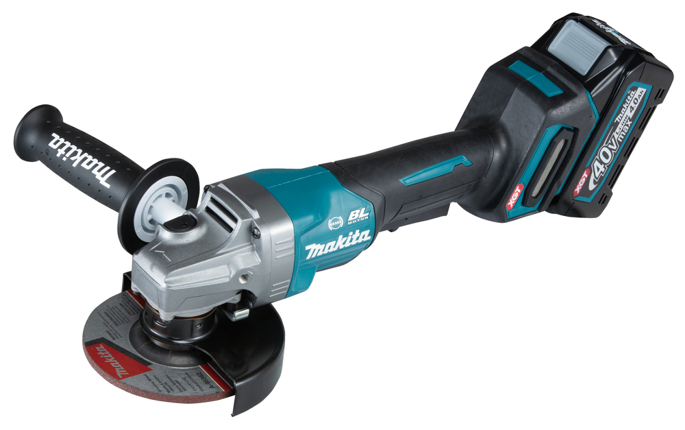 Leistungsstarker 40 V max. Akku-Winkelschleifer für schwere Trenn- und Schrupparbeiten. Mit nicht arretierbarem Paddelschalter. Die AFT-Technologie verhindert Rückschläge der Maschine bei blockierendem Werkzeug. Mit Motorbremse. Das XPT Schutzsystem verhindert das Eindringen von Schmutz und Spritzwasser.