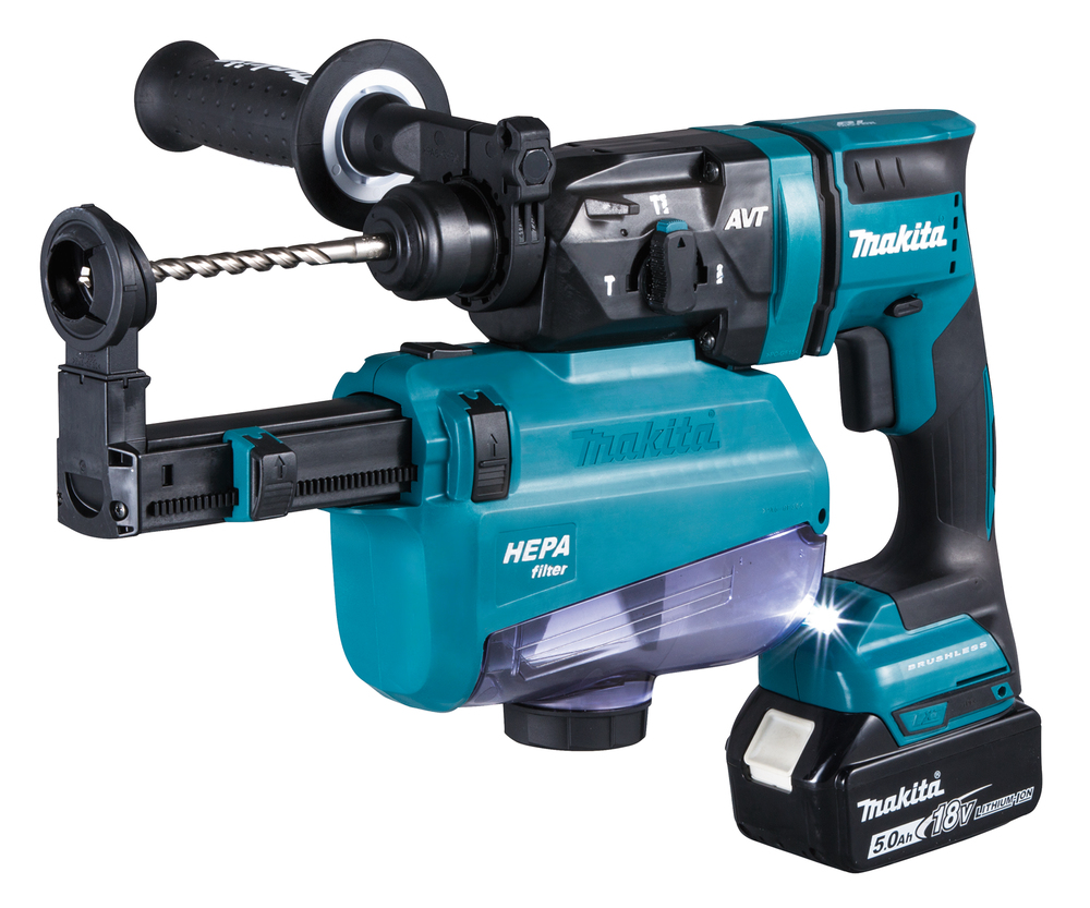 Bürstenloser Kombihammer zum Meißeln, Bohren und Hammerbohren mit AWS Kraftvoller Akku-Kombihammer mit SDS-PLUS Aufnahme. Verfügt über das Auto-start Wireless System und die vorsetzbare Staubabsaugung DX05. Zum Bohren, Hammerbohren und Meißeln geeignet. Die Einzelschlagstärke erreicht bis zu 1,7 Joule, in Beton beträgt die Bohrleistung bis zu 18 mm. AWS-Adapter und Staubsaugung DX05 im Lieferumfang enthalten. Anwendervorteile: