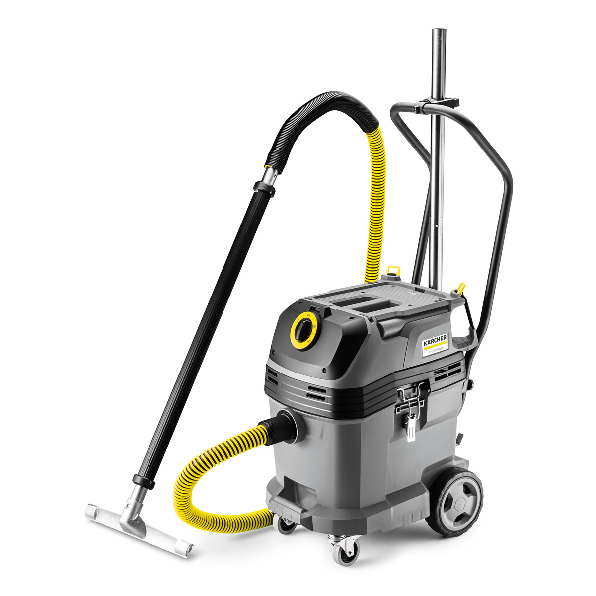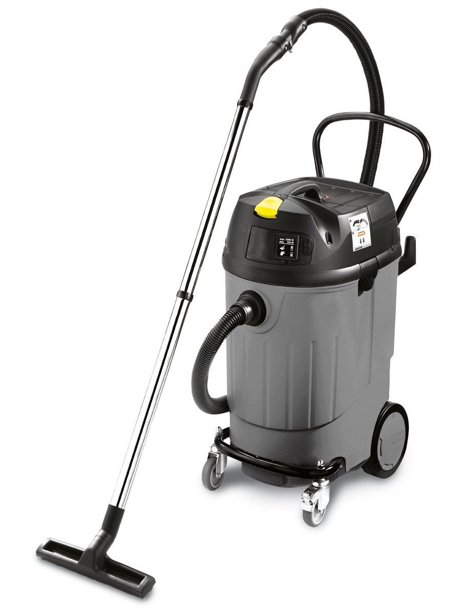 Feinstaub, Grobschmutz, Flüssigkeiten: Unser Nass- und Trockensauger NT 50/1 Tact Te macht wirklich vor nichts halt. Mit seinem 50 Liter großen Behälter mit Bumper, Metalllenkrollen und einem ölbeständigen Ablassschlauch sowie dem höhenverstellbaren Schubbügel eignet er sich optimal zur Reinigung von Arbeitsplätzen und Maschinen in Produktion, Werkstatt und auf der Baustelle. Damit ist er prädestiniert für besonders anspruchsvolle Kunden aus Industrie und Bauwirtschaft, die sich täglich auf Profimaschinen verlassen und unterbrechungs- sowie staubfreies Arbeiten schätzen. Dafür sorgen unter anderem das bewährte Filterabreinigungssystem Tact sowie der feuchtigkeitsresistente PES-Flachfaltenfilter. Eine integrierte Gerätesteckdose mit Ein-/Ausschaltautomatik erleichtert die Arbeit mit Elektrowerkzeugen, während der neue zentrale Drehschalter die einfache Auswahl von Saugprogrammen ermöglicht und die Drehzahl mit einem separaten Drehknopf stufenlos eingestellt werden kann. Umfangreiches, ebenfalls neu entwickeltes Zubehör gehört serienmäßig mit dazu und lässt sich in der integrierten Saugschlauch- und Zubehöraufnahme bequem verstauen. Verstellbarer, ergonomischer Schubbügel Der verstellbare Schubbügel passt sich dank eines Schnellverschlusses der Körpergröße des Bedieners an. Zur platzsparenden Verstauung des Geräts wird der Schubbügel einfach ganz nach unten geklappt. Ölbeständiger Ablassschlauch Ölfester, integrierter Ablassschlauch zum bequemen Entleeren von Flüssigkeiten. Breite Bodendüse mit schnell wechselbaren Einsätzen Bodendüse mit Bürststreifen- und Gummilippeneinsätzen. Müheloser Wechsel zwischen Nass- und Trockensaugen. Zentraler Drehschalter Saugprogramme bequem über zentralen Drehschalter umschaltbar. Lieferumfang