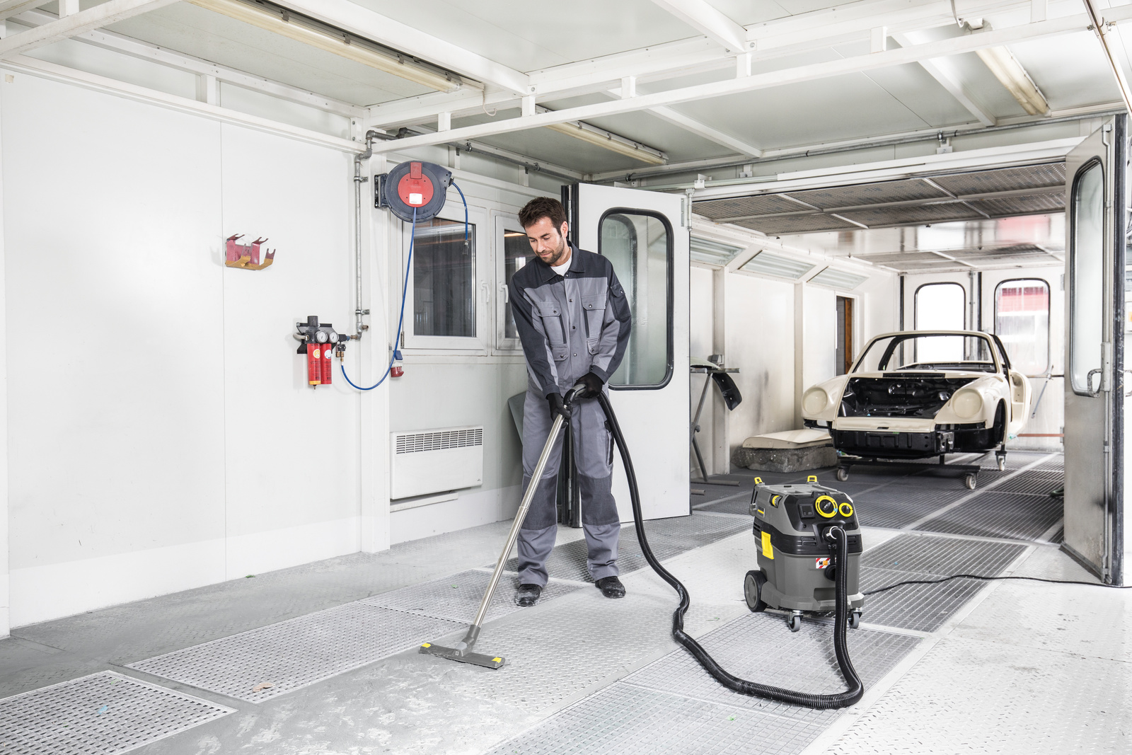 Auf Baustellen und in Werkstätten fallen täglich gefährliche, teilweise lungengängige Feinstäube aller Art an. Dank seiner neuen vollautomatischen Filterabreinigung beseitigt unser kompakter Nass-/Trockensauger NT 30/1 Tact Te M bislang unerreicht hohe Mengen Feinstaub bei einer gleichzeitig garantierten Filtrationseffizienz von 99,9 Prozent. Dabei werden Filterabreinigung und Saugleistung jederzeit mittels sensorgesteuerter Elektronik überwacht und geregelt. Durch seine integrierte Gerätesteckdose mit Automatikanlauf sowie dem kompletten Antistatiksystem (inklusive leitenden Zubehörs) eignet sich das Gerät besonders für die Direktabsaugung von stauberzeugenden Elektrowerkzeugen. Bereits auf Boden oder Maschinen abgelagerte Stäube können mit den neuentwickelten Zubehören, die durchgängig sicher am Gerät verstaut sind, mühelos und vollständig in den robusten 30-Liter-Behälter mit Metalllenkrollen und Bumper aufgesaugt werden.