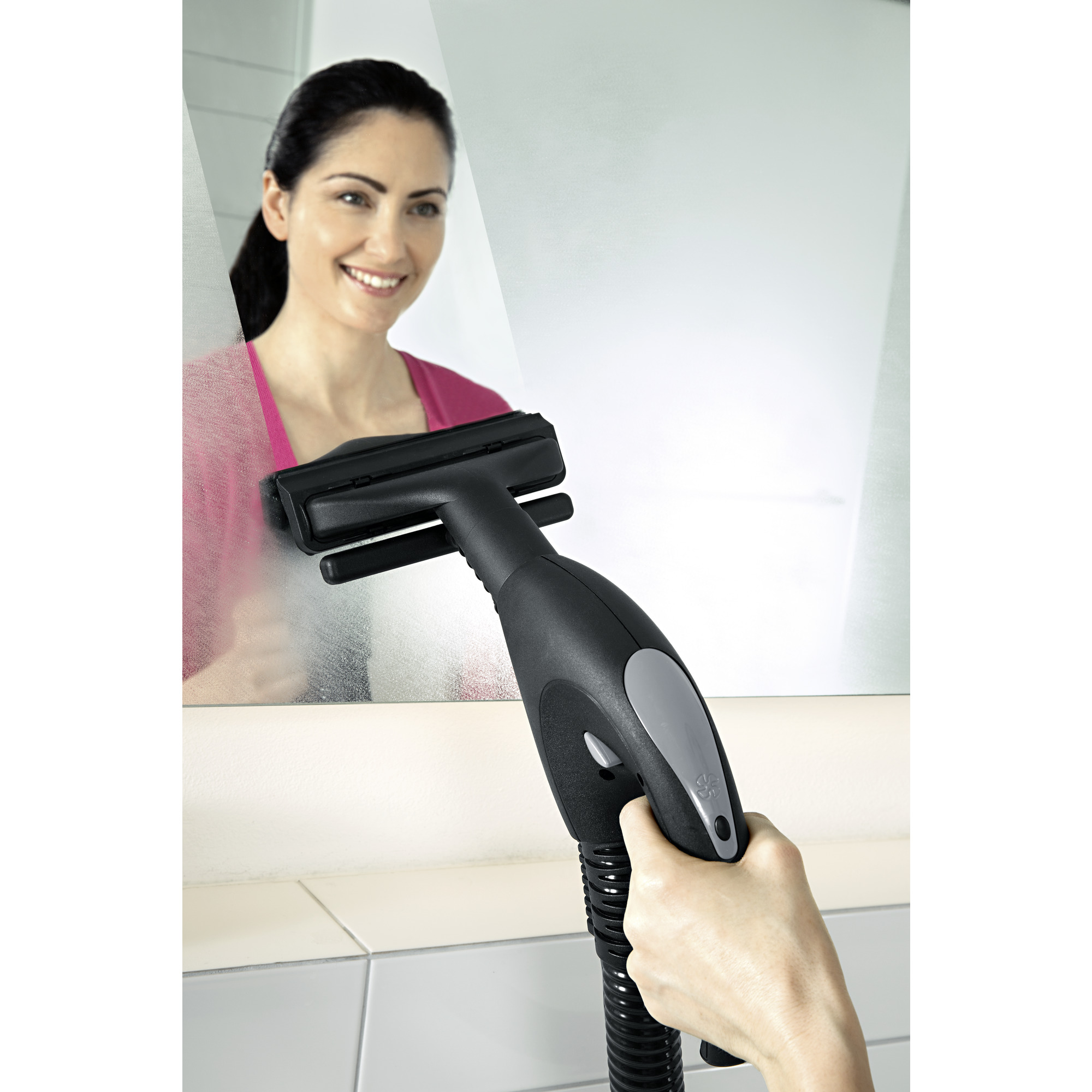 - Handdüse mit Dampfsaugfunktion, kombinierbar mit Fensterdüse (groß und klein), Bürstenkranzaufsatz oder Frotteetuch
